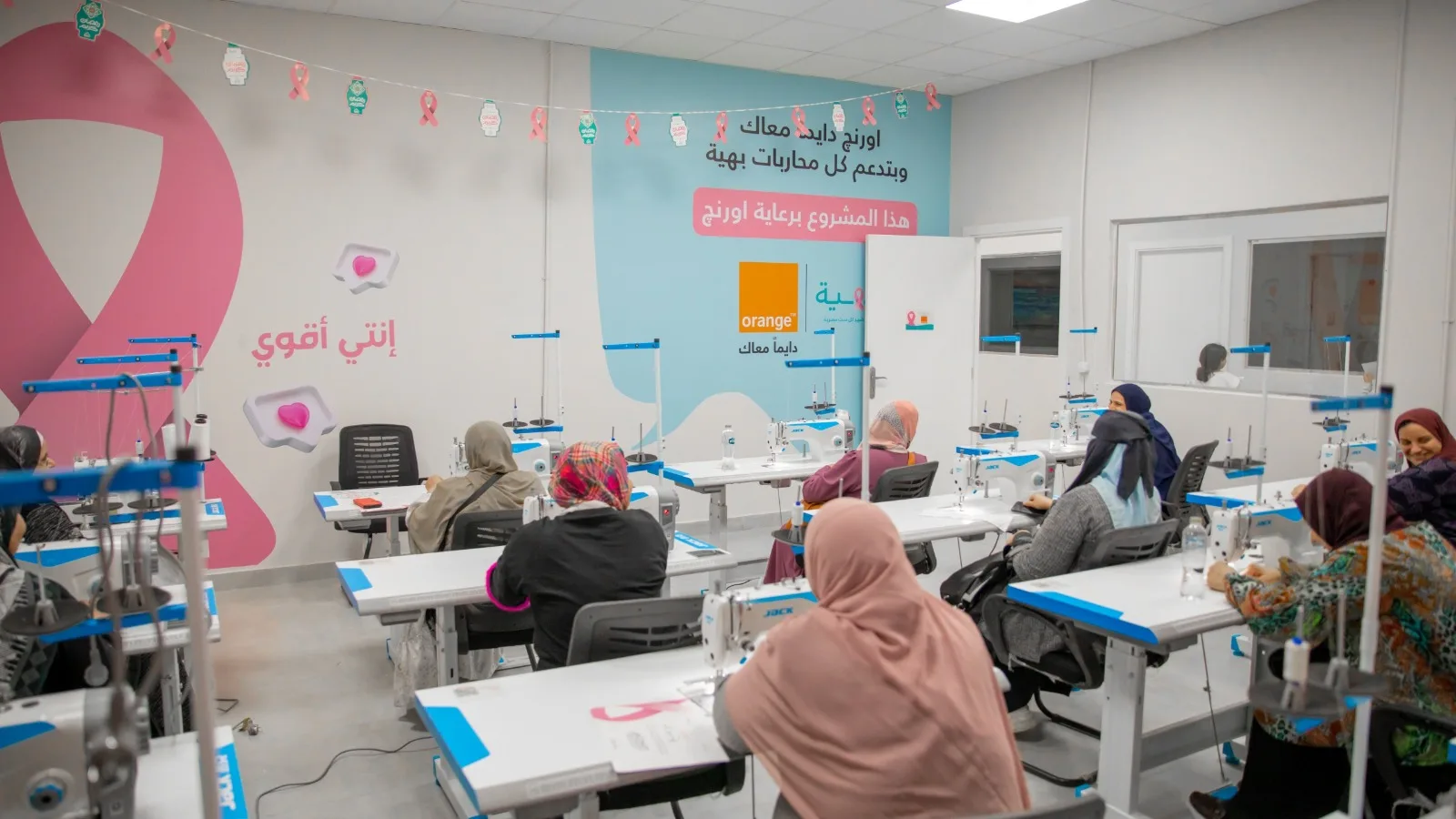 كما تضمنت خطة اورنچ لدعم المرأة، تدشين مبادرة جديدة من مبادرات التعاون طويل الأجل مع مستشفى “بهية” المتخصصة في علاج سرطان الثدي بالمجان، وذلك عبر تصميم برنامج تدريبي وتأهيلي خاص، وموجة بالكامل للمحاربات من المرض، عبر توفير ماكينات خياطة في أحد الأقسام بمستشفى بهية وتدريب السيدات المحاربات على المهارات اللازمة لاستخدامها في الخياطة وصناعة الملابس، كما تقدم اورنچ دعما خاصا لمساعدتهم في تسويق منتجاتهن مما يمكنهن من توليد دخل مستدام والحفاظ على مستوى معيشة جيد وآمن يساعدهم على إتمام مراحل الشفاء والاندماج بشكل جيد مع المجتمع وتوفير حياة كريمة لأسرهن.