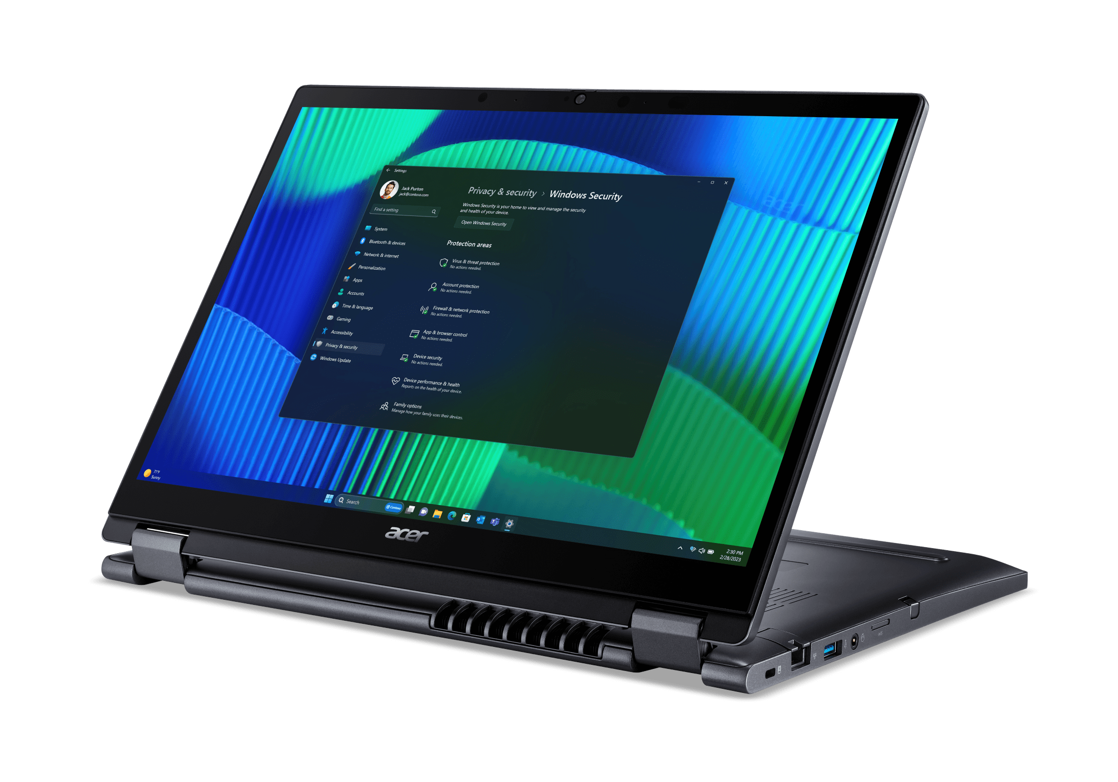 ويتيح ترافلميت P4 سبن 14 (TMP414RN-54) القابل للتحويل للمستخدمين التبديل بين المهام والأوضاع المختلفة بكل سهولة، بالاستفادة من وزنه البالغ 1.49 كيلوجرام وتصميم بسماكة 21.9 ميلليمتر. ويستفيد المستخدمون من أداء معزز بفضل معالج يصل إلى إنتل كور ألترا 7 من طراز 165U، ووحدة معالجة رسوميات مدمجة وتوافُق مع تقنية إنتل فيبرو إنتربرايز (vPro Enterprise) المخصصة لبيئات الأعمال، بالإضافة إلى بطارية طويلة الأمد، وإمكانية الشحن السريع عند الحاجة لضمان جلسات عمل عالية الكفاءة. ويأتي الجهاز بشاشة قياس 14 بوصة بدقة عرض WUXGA (1920 x 1200) مع خيار تقنية اللمس ونسبة عرض إلى ارتفاع 16:10 مع حواف ضيقة، للاستمتاع بتجارب مرئية وصوتية مُعززة ونظام DTS الصوتي. ويتوافق ترافلميت P4 سبن 14 مع تقنية Wi-FE 6E، بالإضافة إلى خيار شبكات 4G LTE، مما يساعد رجال الأعمال كثيري التنقل للبقاء على اتصال.