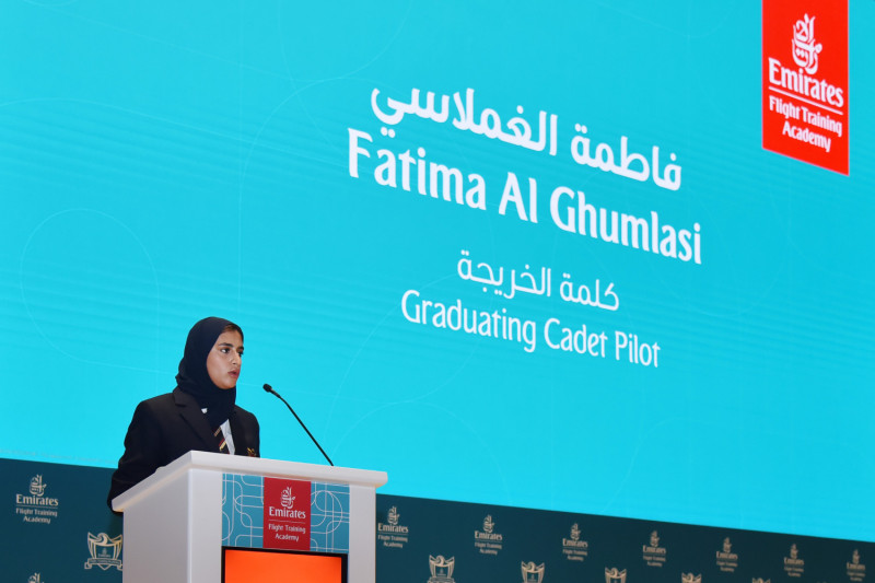 وفي كلمةٍ ألقتها باسم زملائها الخريجين، قالت فاطمة الغملاسي: “يمثل اليوم علامة فارقة في مسيرتي الشخصية والمهنية، ولا يسعني إلا أن أقف أمامكم كقائدة طائرة إماراتية فخورة. اليوم، لا يتعلق الأمر فقط بالأجنحة التي اكتسبتها، بل بالرحلة التي بدأتها. كانت رحلة تستحق كل لحظة، وذلك بفضل حكمة مدربينا والدعم الثابت من عائلاتنا وتشجيع أقراننا. لقد قضينا وقتنا في الأكاديمية ليس في تعلم الطيران فقط، لكن الأمر كان يتعلق أيضاً بالمهارات الحياتية والاهتمام بالتفاصيل والتواصل والمحافظة على الهدوء تحت الضغط، وقبل كل شيء، ضبط الجسم والعقل والعواطف”.