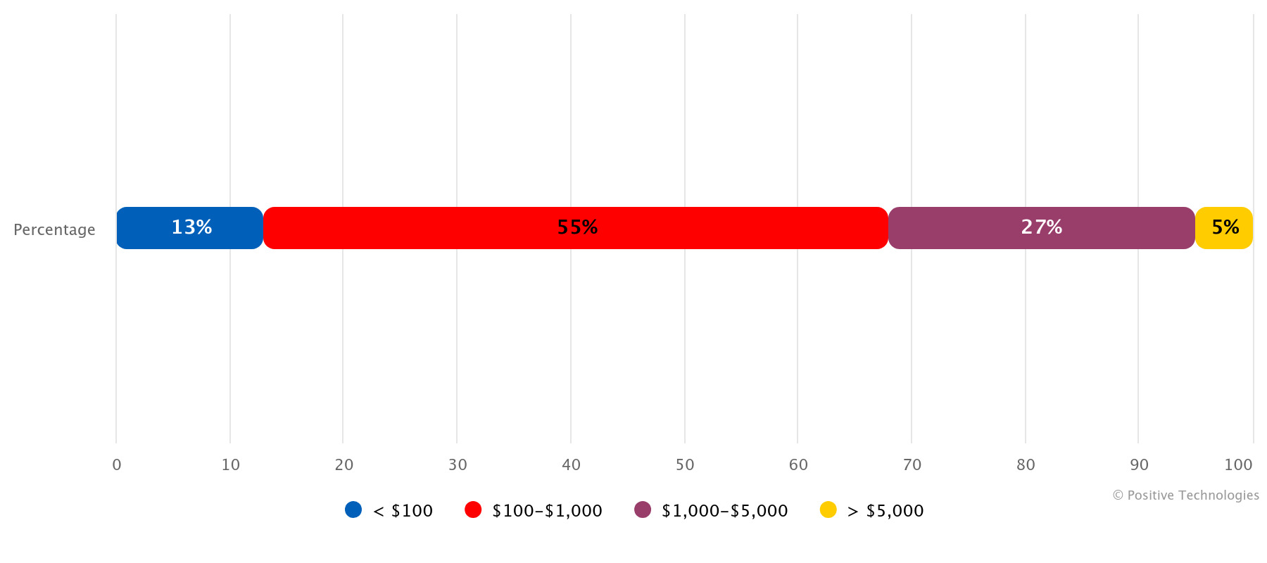 وقالت أناستاسيا تشورسينا، محللة لدى شركة بوزيتف تكنولوجيز: ” نتيجةً للمقارنة بأبحاثنا السابقة خلال فترة مماثلة، فقد تضاعفت حصة البيانات الموزعة مجاناً تقريباً (حتى 59%). وهذا يسمح للمجرمين بتوسيع نطاق هجماتهم المستهدفة على الضحايا المحتملين. وإذا رفض الضحية دفع الفدية، فيمكن لمجموعات برامج الفدية، وكذلك نشطاء القرصنة الإلكترونية (الذين يهدفون إلى لفت انتباه الجمهور إلى موقف سياسي بدلاً من مجرد الحصول على مكاسب مالية)، توزيع البيانات مجاناً”.