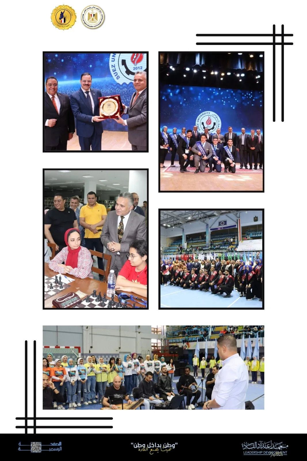 وفي ذكرى عيد تحرير سيناء وبمُشاركة 500 طالب وطالبة من 29 جامعة مصرية وتحت رعاية قطاع الأنشطة الطلابية بالوزارة نظم معهد إعداد القادة وجامعة السويس رئاسة الدكتور أشرف حنيجل رئيس الجامعة مهرجان الأنشطة الطلابية الأول لطلاب الجامعات المصرية تحت شعار “مصر حُرة آمنة سالمة، وتضمنت الفعاليات طابور عرض للجامعات المُشاركة، وحفلاً فنيًّا قدمه كورال هارموني عربي التابع لجامعة عين شمس، فضلاً عن تنظيم العديد من الأنشطة الرياضية والفنية والاجتماعية ، وكذلك تنظيم لقاءات توعوية للطلاب حول البروتوكول والاتيكيت، والمراسم، ومحاضرات عن الأمن القومي المصري ودور الدولة المصرية في مواجهة تحديات الأزمة الاقتصادية، ومواجهة الأفكار المغلوطة والمُتطرفة، فضلاً عن استعراض بطولات أهل السويس في الدفاع عن الوطن، وعلى هامش المهرجان، تم إعلان نتائج المُسابقات في مختلف المجالات الرياضية والاجتماعية والفنية.