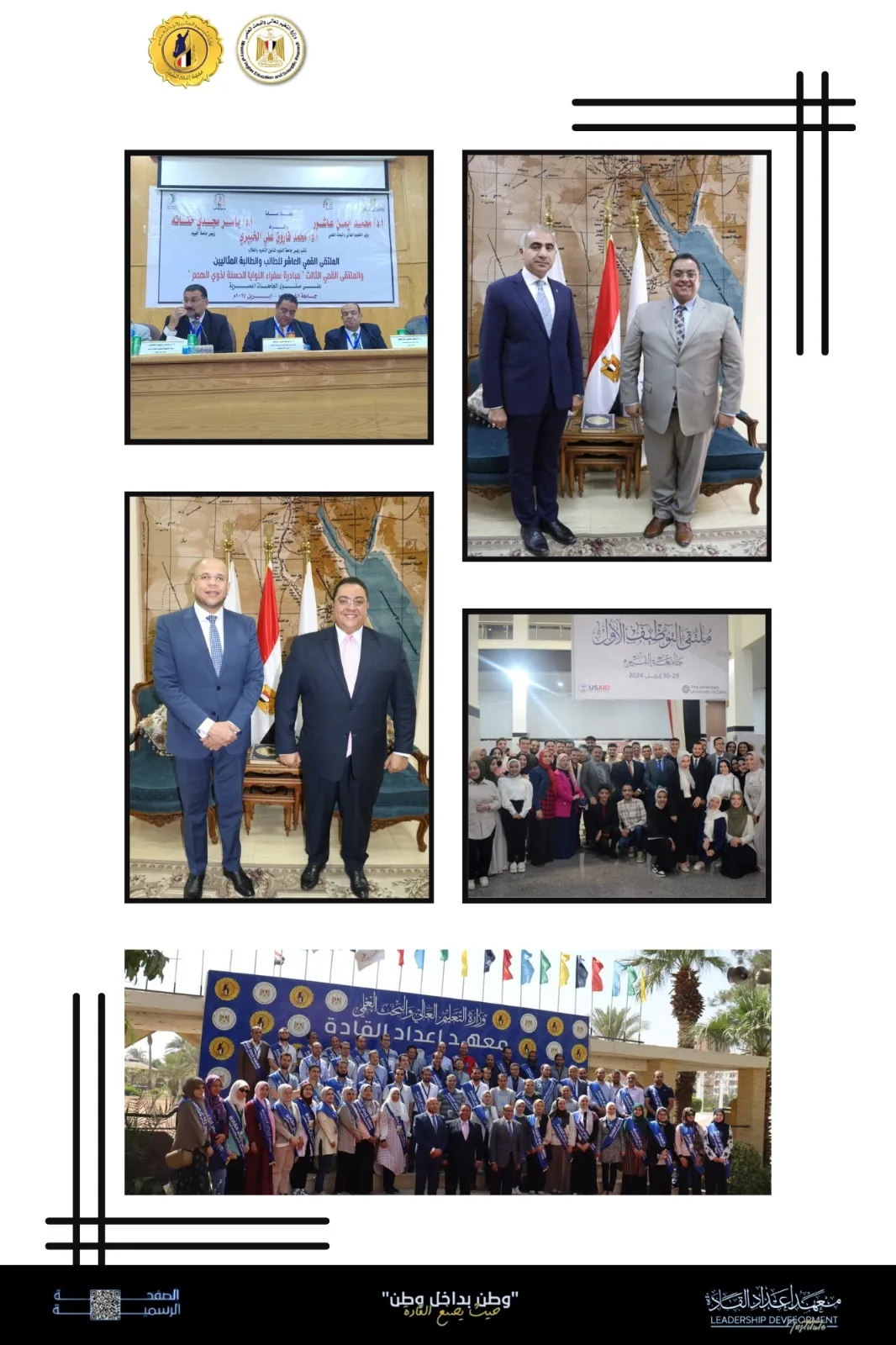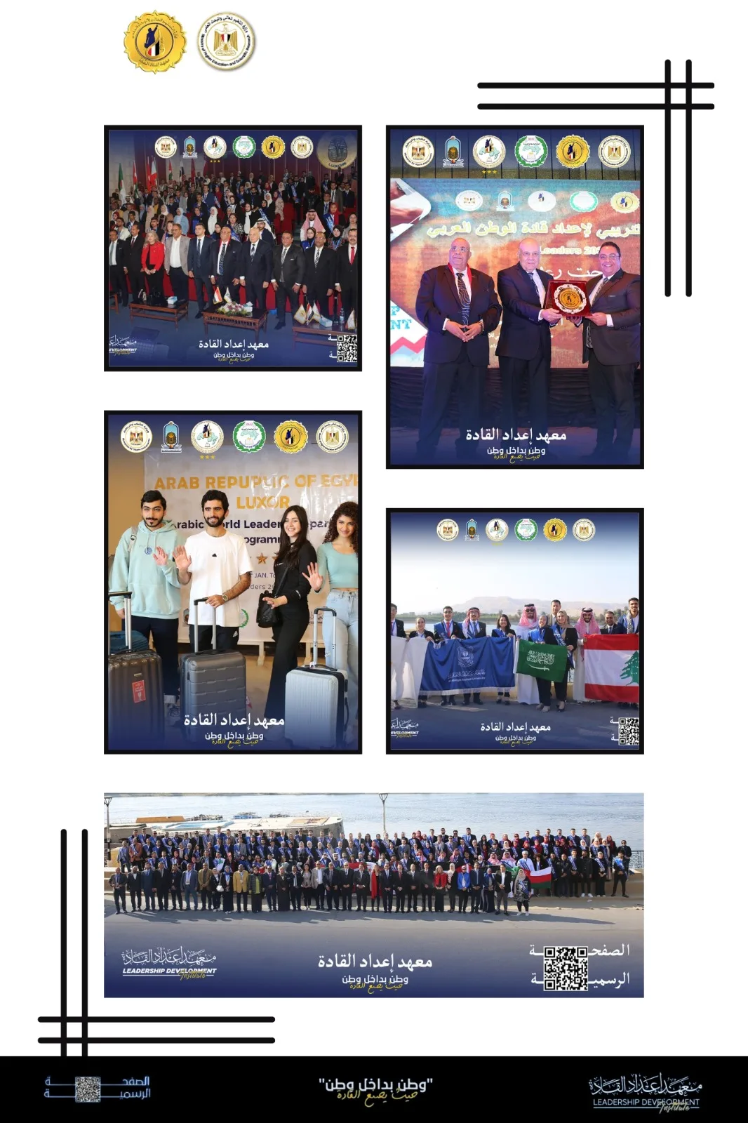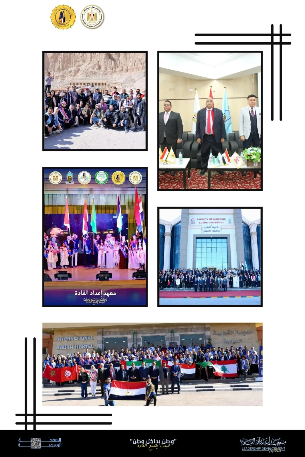 وبرعاية وزارتى التعليم العالى والشباب والرياضة وبمشاركة 20 دولة عربية، نظم معهد القادة البرنامج التدريبي إعداد قادة الوطن العربي بمحافظة الأقصر وبالتعاون مع جامعة الأقصر بحضور الدكتور عمرو عزت سلامة الأمين العام لاتحاد الجامعات العربية، الدكتور حمدي محمد حسين رئيس الجامعة، بهدف إعداد القيادات العربية لكى يكونوا سفراء في جامعاتهم ومن ثم بلادهم وذلك تأكيدا على توجيهات الدكتور أيمن عاشور وزير التعليم العالي والبحث العلمي، على أهمية التعاون العربي المُشترك وتبادل الخبرات بين الدول العربية؛ لخلق وإعداد جيل من الشباب العربي والمصري القادر على تحمل المسئولية، وفقًا للاستراتيجية الوطنية للتعليم العالي والبحث العلمي.