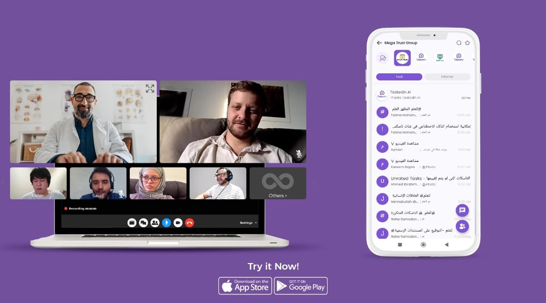 كما يوفر تاسكد إن التواصل بين إدارات الشركة وفريق العمل الواحد من خلال محادثات صوتية وكتابية كما يتيح مشاركة الملفات والمستندات، بجانب خاصية الدردشة الجماعية واجتماعات الفيديو، ويوفر بيئة أمنة وخاصة بعمل كل شركة لا يمكن اختراقها لان التطبيق مؤمن بشكل تام”.