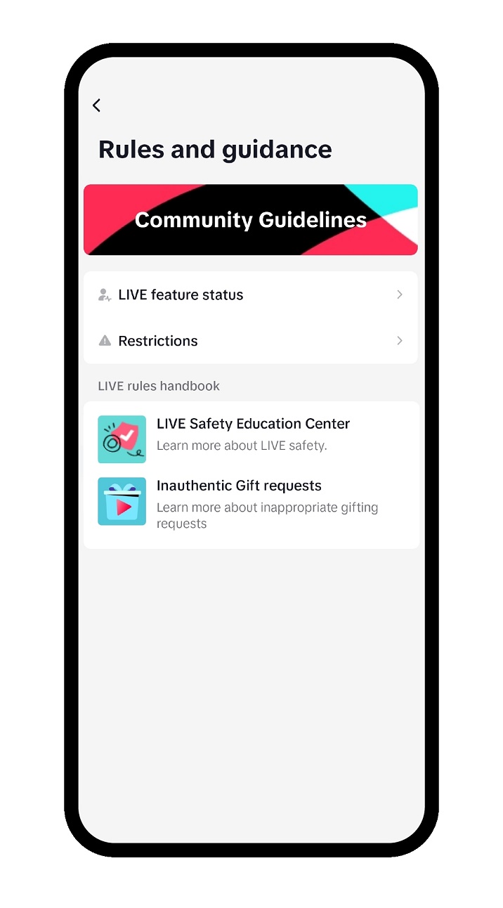 ولمساعدتهم في تحقيق ذلك، ستطلق منصة تيك توك مركز السلامة الجديد لخاصية البث المباشر “LIVE”، بالإضافة إلى تحديث مركز السلامة التعليمي الخاص بالبث المباشر “LIVE” على التطبيق، حيث يمكن لصانعي المحتوى التعرف بشكل أفضل على سياسات البث المباشر “LIVE” والأدوات التعليمية المتاحة.