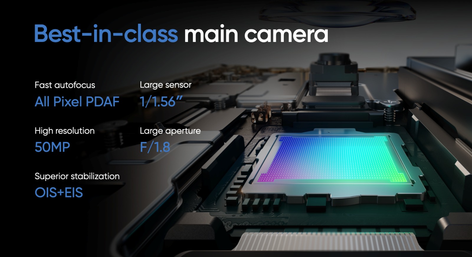 تتميز كاميرا ريلمي 12 برو الرئيسية بمستشعر Sony IMX890 OIS، الذي يعزز التصوير في أوقات الليل. يتمتع هذا المستشعر بحجم كبير يبلغ 1/1.56 بوصة، وبطول بؤري مكافئ يبلغ 24 مم، وفتحة واسعة بقياس f/1.8، وهو ما يجعله مناسبًا تمامًا للتصوير الليلي. مع دعم OIS، يتفوق في توفير تسجيل فيديو مستقر وتحسين نسبة نجاح الصور. بالإضافة إلى ذلك، تتميز سلسلة ريلمي 12 برو بكاميرا عدسة التصوير البعيد البريسكوبية وعدسة زاوية واسعة فائقة. وتقدم إمكانية التكبير بنسبة 0.6x، 1x، 2x، 3x، 6x، والذي يوفر تجربة تصوير بصري كاملة ومركزة بشكل مثالي تضاهي تلك المتوفرة في الأجهزة الرائدة.