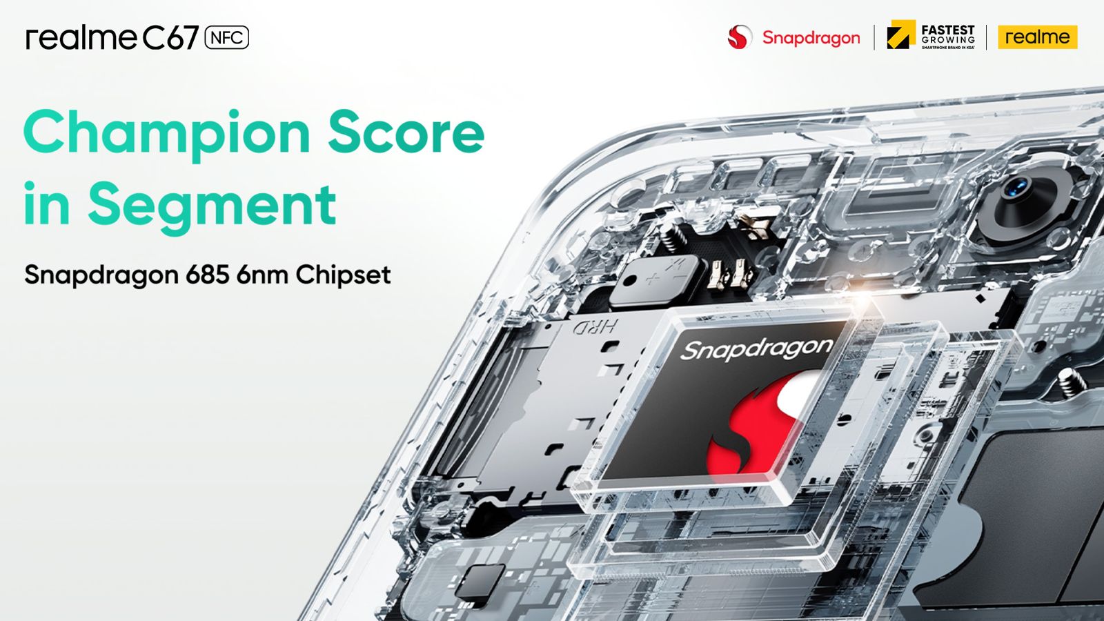 ويمثل realme C67 إطلاقًا جديدًا لمجموعة شرائح Snapdragon 685 بدقة 6 نانومتر، مما يوفر أداءًا استثنائيًا بزيادة تصل إلى 40% في تردّد وحدة المعالجة المركزية و 10% في تردّد وحدة معالجة الرسومات مقارنة بالجيل السابق. تتفوق هذه الشرائح بدقة 6 نانومتر على منافسيها وتقدم تجربة فائقة على مستوى 3Kمقارنةً بشريحة G88.