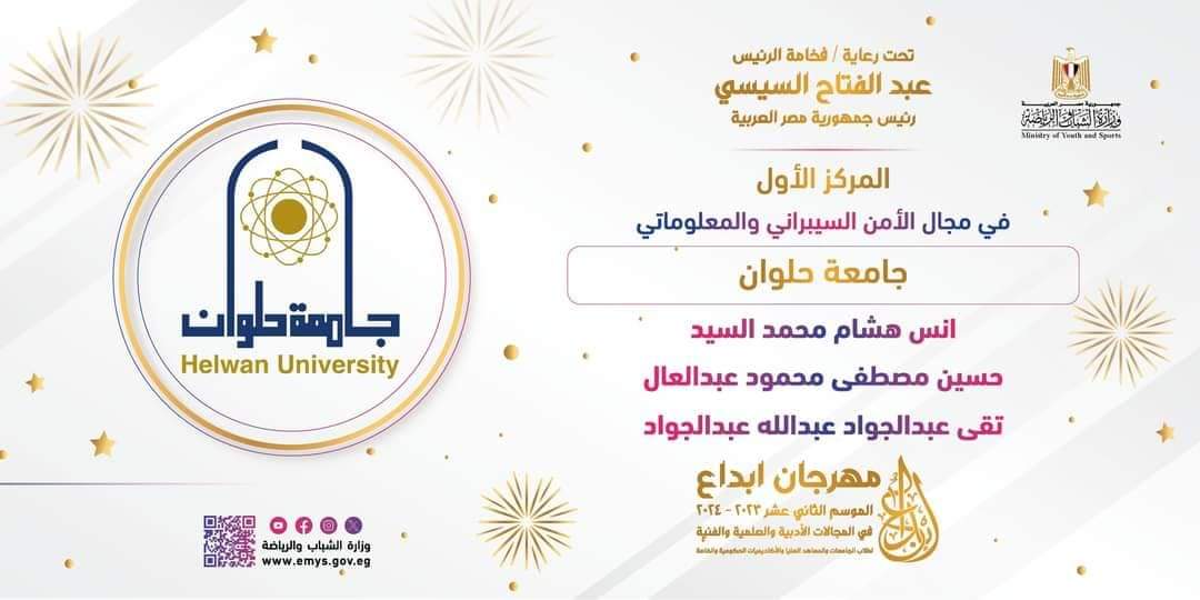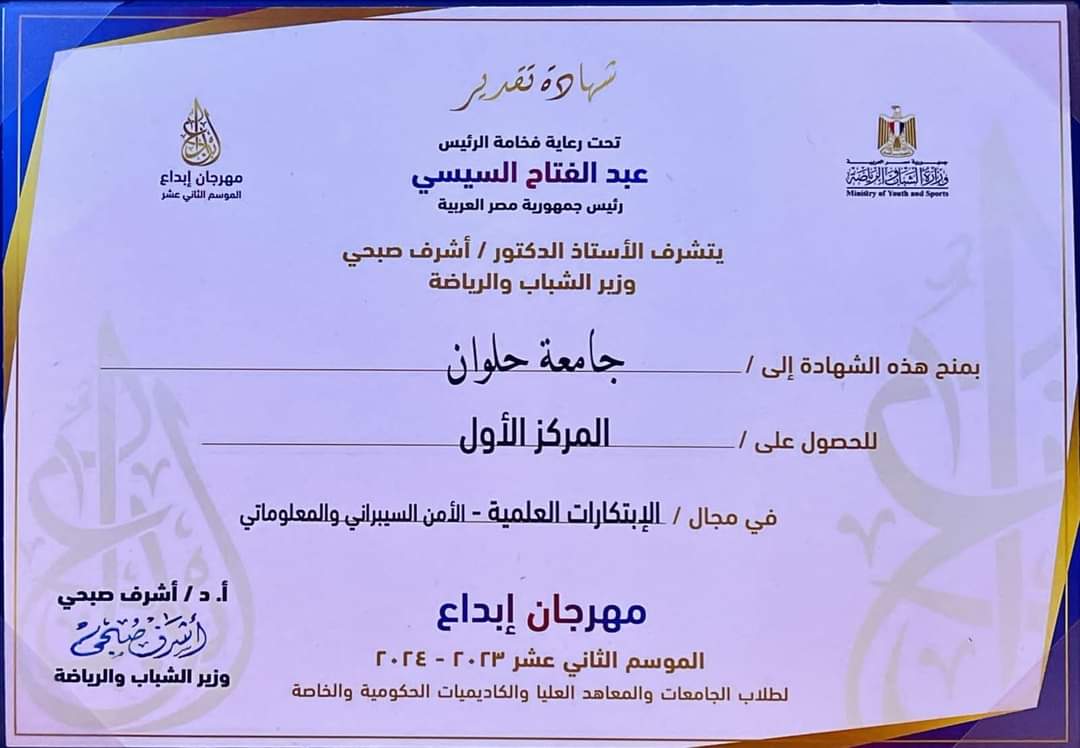 فريق الأمن السيبراني والمعلوماتي بجامعة حلوان يحصد المركز الأول فى إبداع