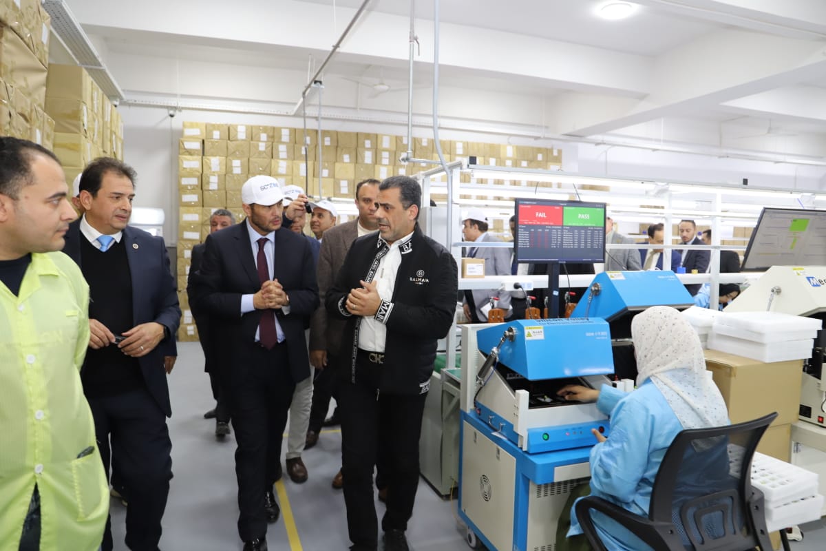 وشرح المهندس عبد المنعم الخواجة، لأعضاء الوفد مراحل العملية الإنتاجية لخطوط إنتاج السماعات اللاسلكية والساعات الذكية بمصنع وادي السيليكون بالمنطقة الاقتصادية لقناة السويس، مؤكدًا أنه الأول من نوعه في مصر ومنطقة الشرق الأوسط، وحائز على شهادات الجودة العالمية الأيزو 9001 و45001 ومبني على أحدث النظم التكنولوجية ومزود بأحدث أجهزة الاختبارات والجودة وذلك لضمان خروج المنتجات بنفس الجودة العالمية.