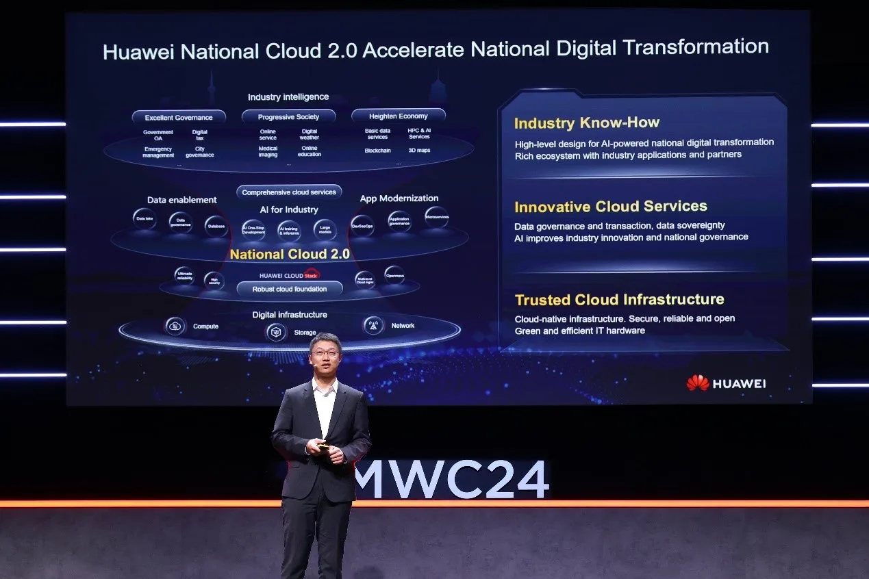 أطلقت هواوي، الرائدة عالمياً في مجال حلول تكنولوجيا المعلومات والاتصالات، السحابة الوطنية 2.0 National Cloud، التي تُمكّن الحكومات من تسريع رحلتها نحو التحول الرقمي وتعزيز أنظمة الذكاء الاصطناعي، وذلك على هامش مشاركة هواوي في المؤتمر الدولي للهواتف المحمولة 2024 MWC.