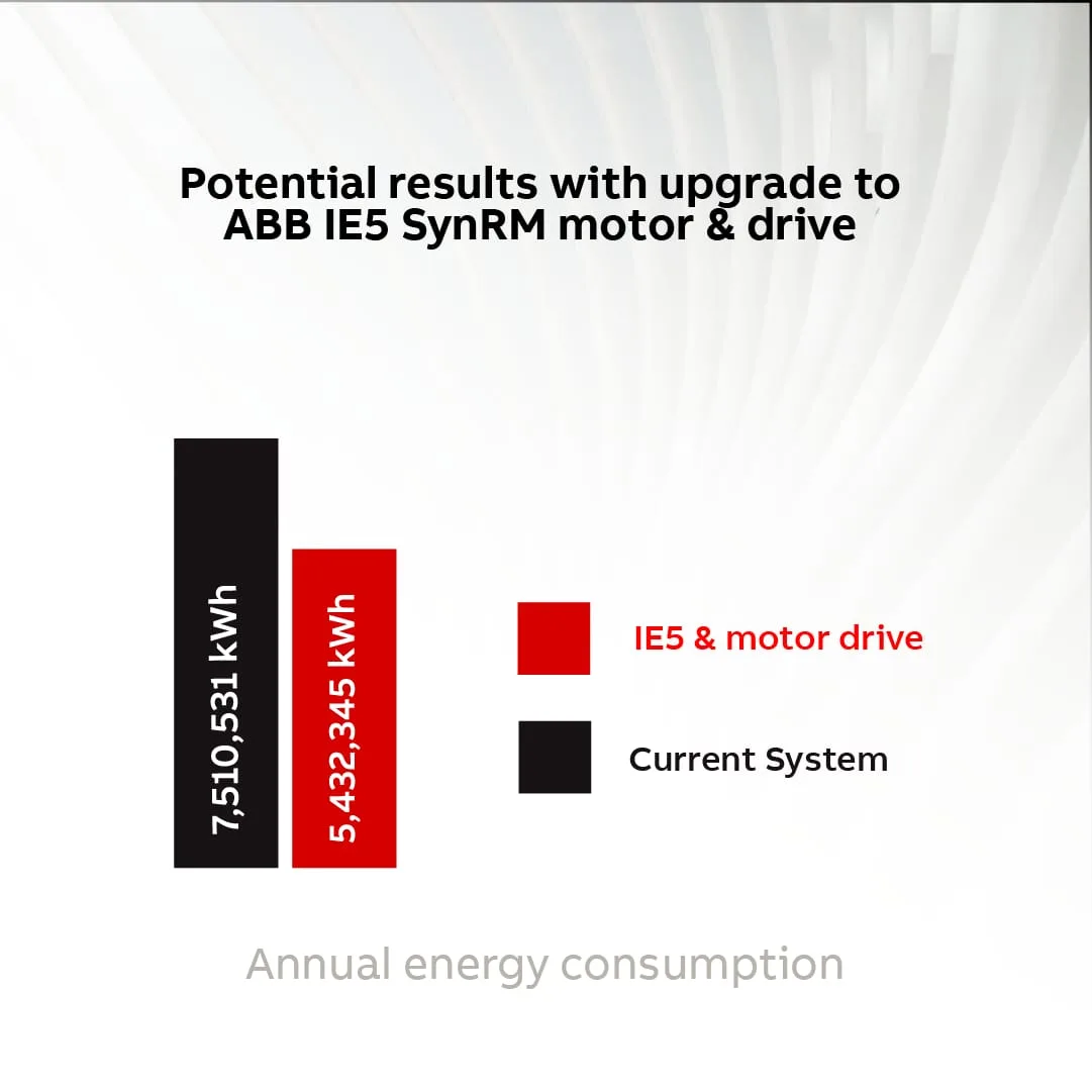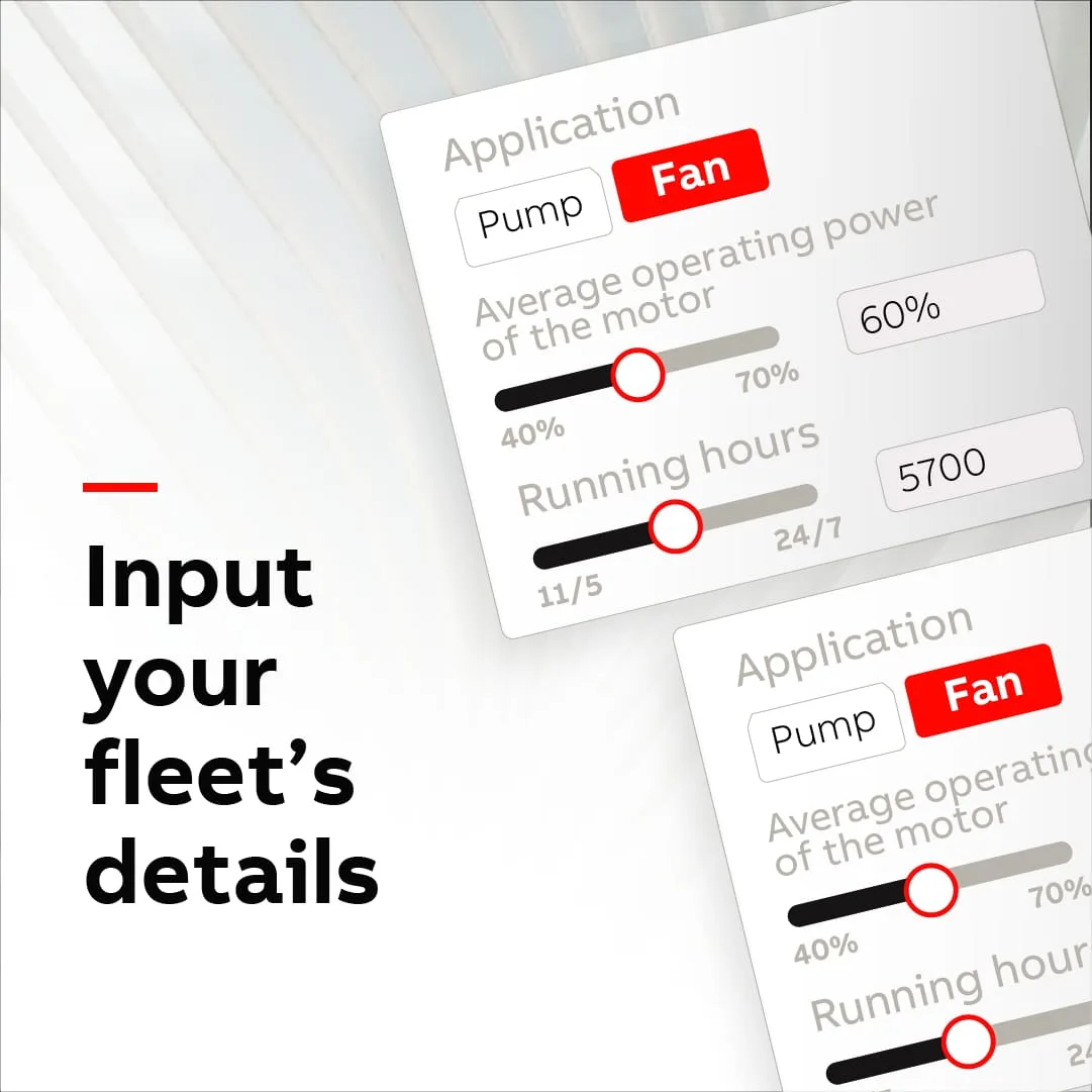 توفر الحاسبة تقديرًا أوليًا حول كيفية أداء المحركات وحجم توفير الطاقة وتقليل التكاليف التي يمكن تحقيقها من خلال تحديث أنظمة المضخات والمراوح التي تعمل بالمحركات منخفضة الجهد المباشرة عبر الإنترنت، والتي تم تثبيتها بدون مغيرات السرعة للتحكم في سرعتها. وتركز الحاسبة على محركات الجهد المنخفض من فئة الكفاءة IE3 وما دونها بحيث تقوم بتقدير حجم توفير الطاقة المحتمل الذي يمكن تحقيقه من خلال التحديث إلى أحدث تقنيات المحركات – فئة IE5 SynRM – لتحقيق مكاسب مثالية في كفاءة الطاقة.