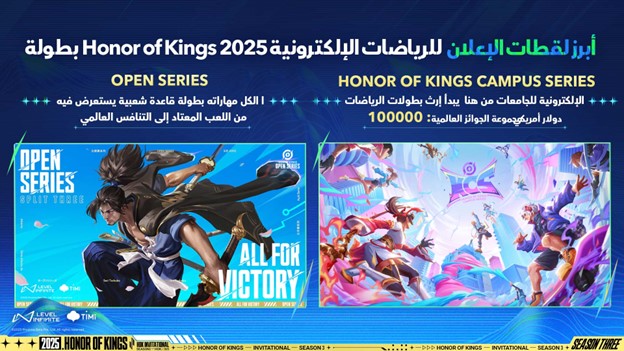 شهدت سلسلة بطولات Honor of Kings Open Series، التي توفّر منصّة بدون قيود لمنافسة اللاعبين على التصنيف، مشاركة أكثر من 150 ألف لاعب من جميع أنحاء العالم يسجلون في بطولة Split 3. ومع الالتزام بالشمول، ستعود بطولة Open Series Split 4 في فصل الصيف بمزيد من التفاصيل حول موعد وكيفية التسجيل.